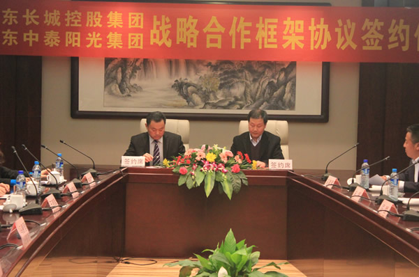 2014年2月24日,山東中泰陽光集團與山東長城控股集團戰略合作框架協議簽約儀式,在日照嵐橋錦江大酒店隆重舉行。此次簽約,標志著雙方建立了穩固的戰略合作伙伴關系,為集團新業務的拓展奠定了良好的基礎。
